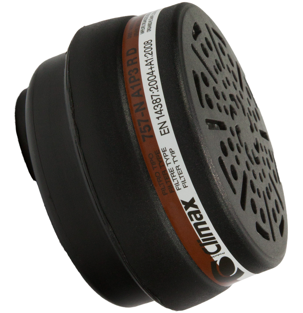 Το φίλτρο 757-N A1P3 R της Climax είναι σχεδιασμένο για χρήση με τις ημισυσκευές αναπνοής Climax μοντέλα 757, 800 και την ολοπρόσωπη μάσκα 732-N. Προσφέρει συνδυασμένη προστασία από οργανικούς ατμούς και επικίνδυνα σωματίδια: