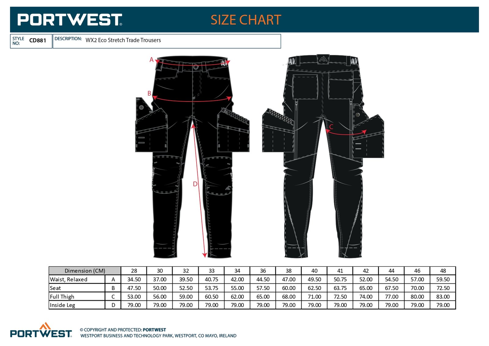 CD881 Portwest – WX2 Eco Stretch Επαγγελματικό Παντελόνι Εργασίας
