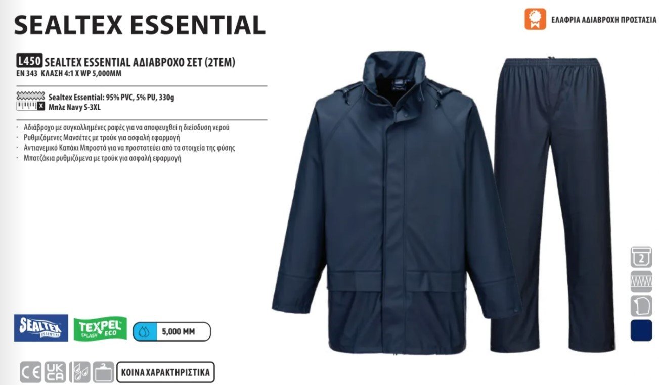 L450 PORTWEST ΣΕΤ ΑΔΙΑΒΡΟΧΟ ΚΟΣΤΟΥΜΙ ΝΙΤΣΕΡΑΔΑ SEALTEX NAVY ΠΡΑΚΤΙΚΗ ΣΥΣΚΕΥΑΣΙΑ